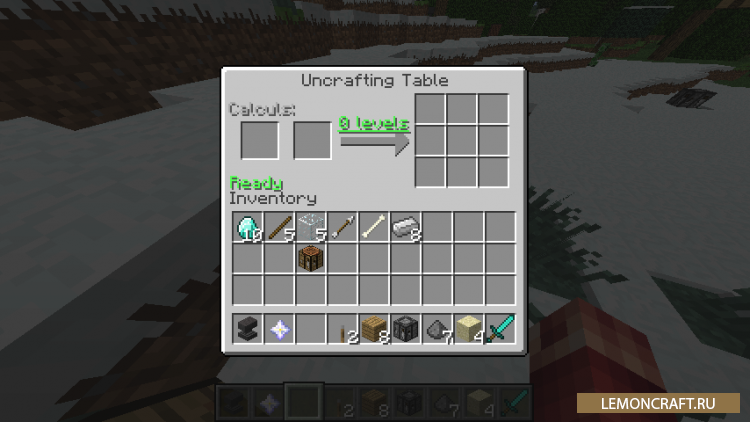 Мод Uncrafting Table добавит в игру новый верстак с помощью которого вы сможете произвести демонтаж предметов на его составляющие. Этот мод понадобиться в том случае, если вы скрафтили предмет, который вам в итоге не пригодился. С этим модом вы можете разобрать данный предмет, тем самым вернув нужные вам ресурсы.
